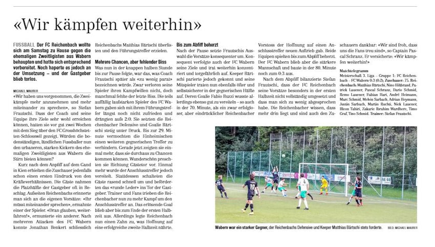 • Matchbericht FC Reichenbach vs Wabern / "Frutigländer" vom 20.09.2022